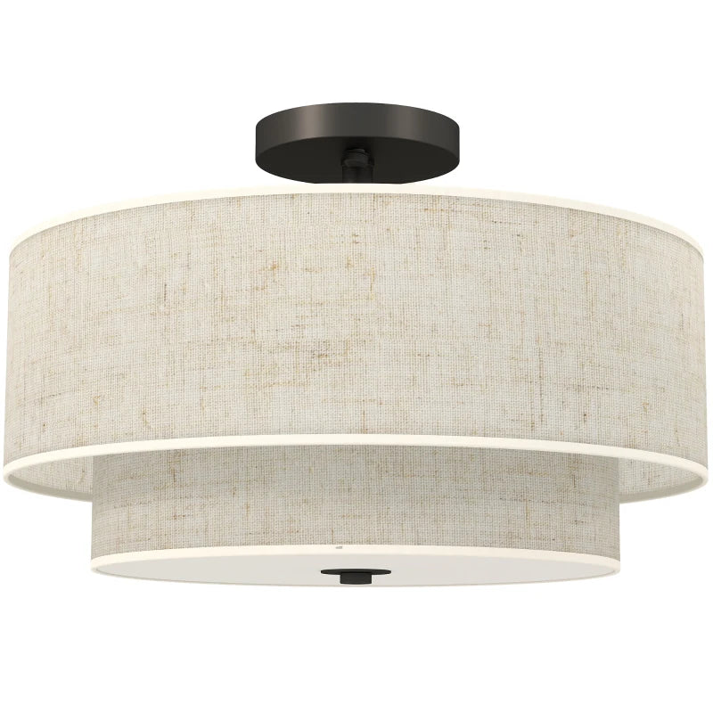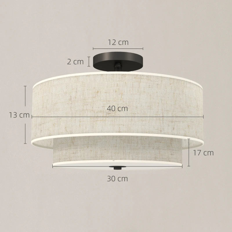 Висяща лампа HOMCOM с двоен ленен абажур, кремава