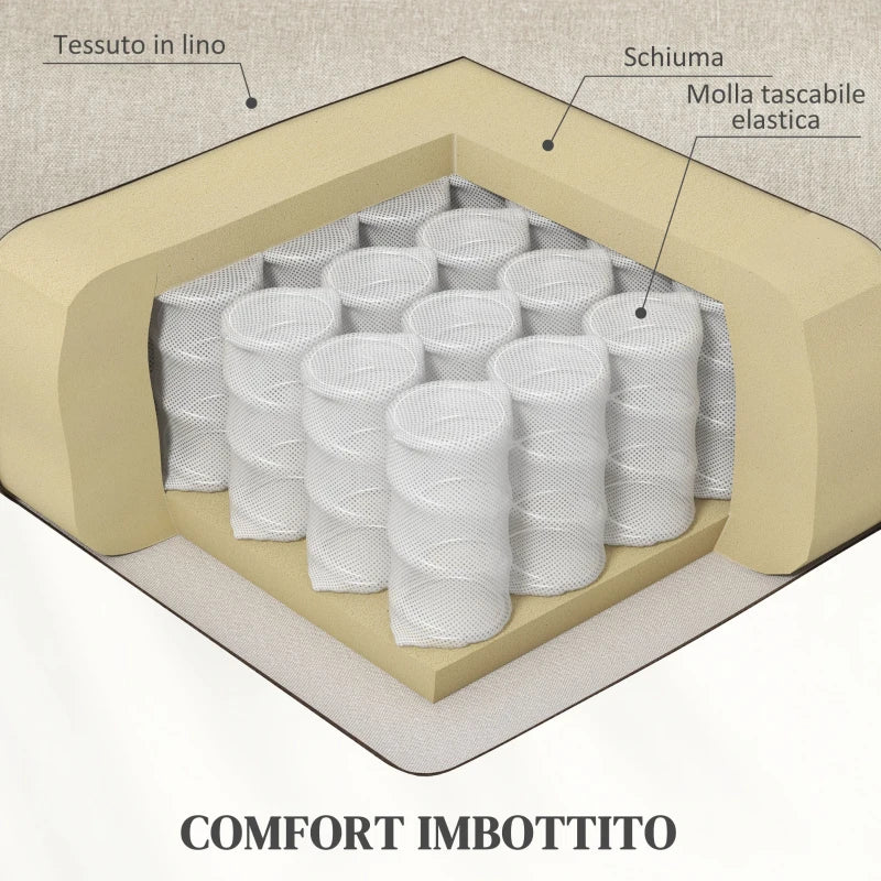 - Материали: Плат с вид на лен (100% полиестер), стоманена рамка, подплата от пяна