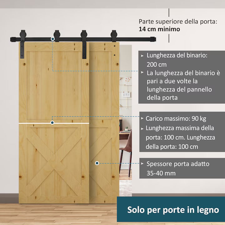 - Комплект за плъзгаща се врата за хамбар, подходящ за до 2 дървени врати
