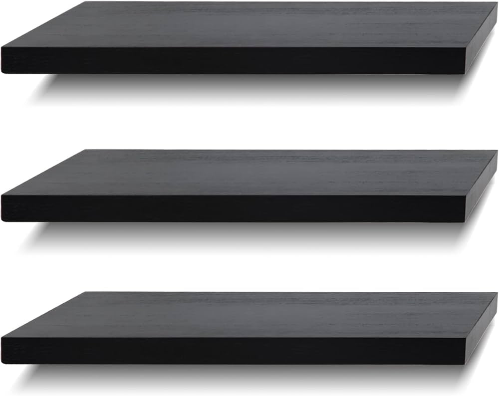 Комплект от 3 големи черни стенни рафта