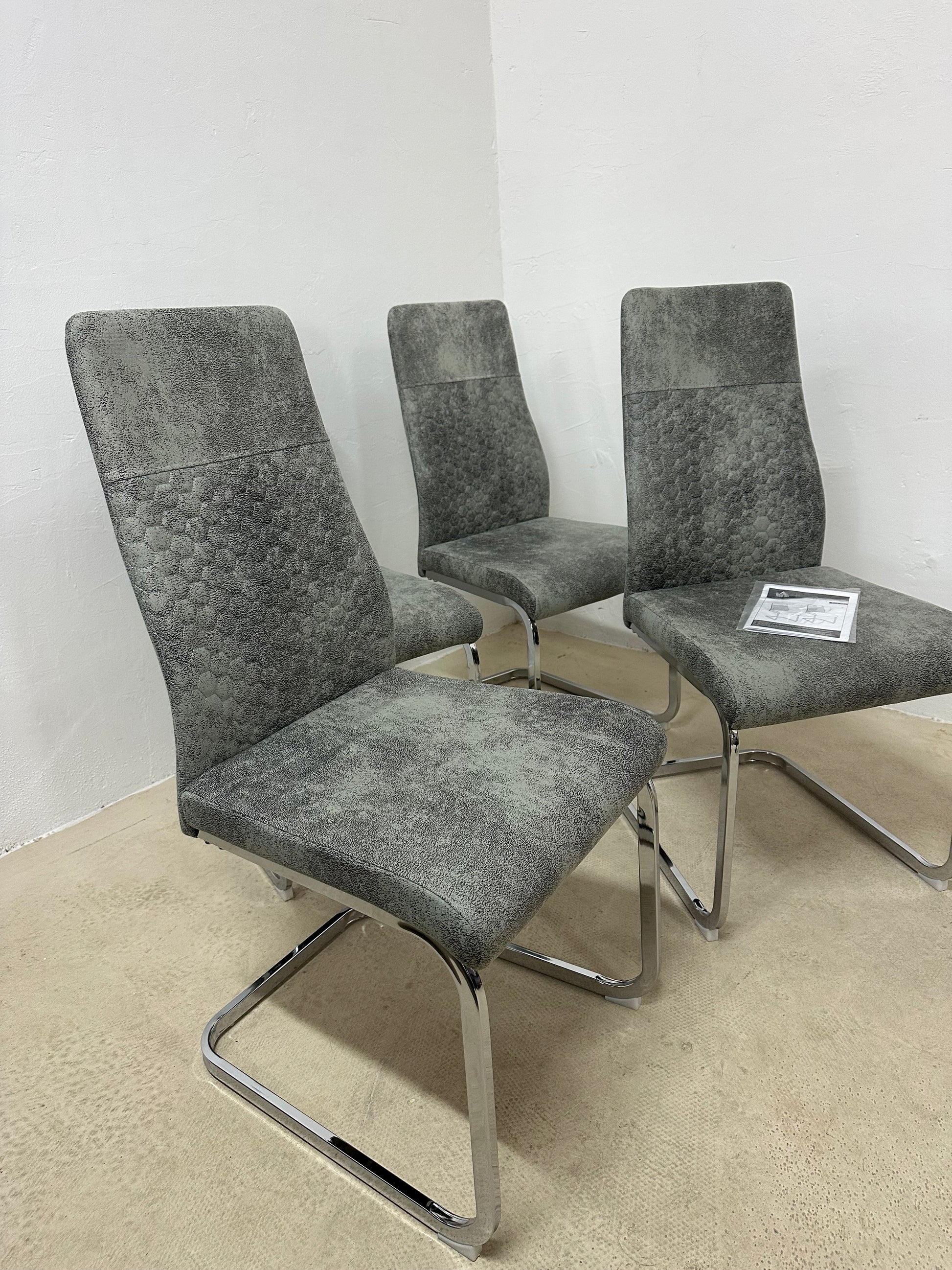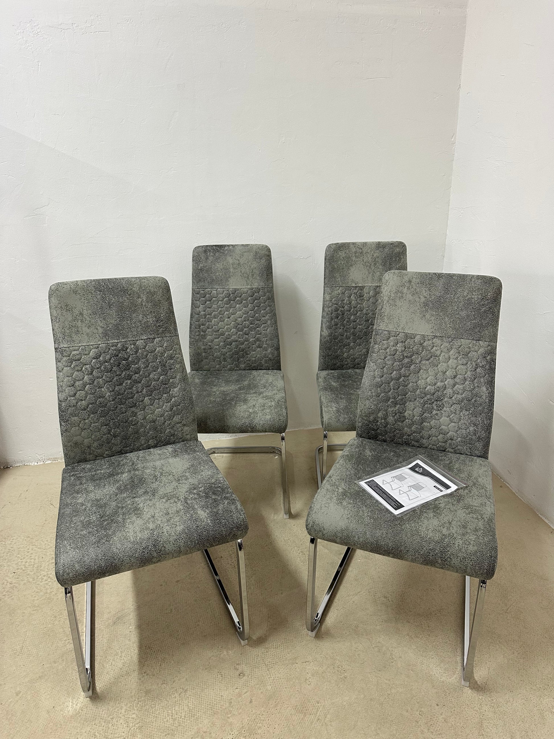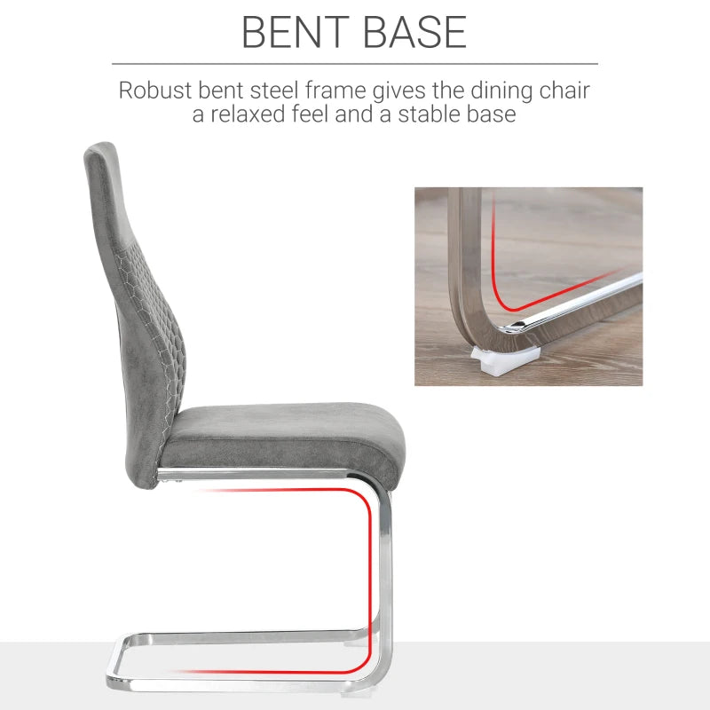 Комплект от 4 трапезарни стола HOMCOM с висока облегалка и кадифена материя, акцентен стол за трапезария, хол с извита метална основа, сив