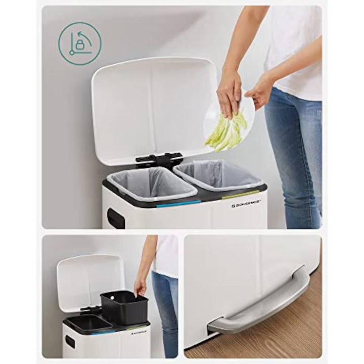Кош за рециклиране, Songmics, 2 x 20L, бял, LTB40WT, Soft-Close