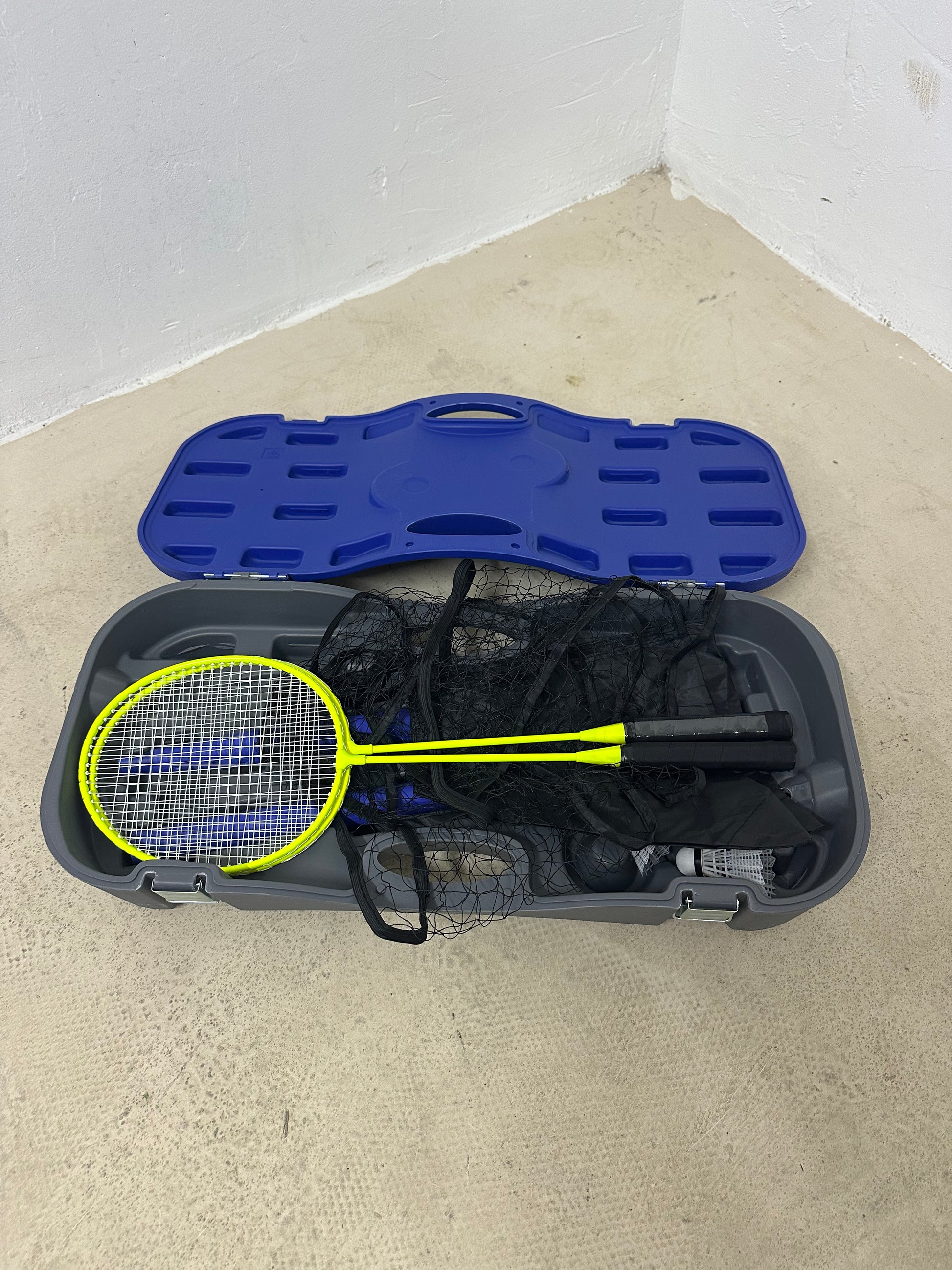 - пълен комплект оборудване, включително 2 пррца, 2 ракети, 1 кутия за съхранение и 1 мрежа за бадминтон