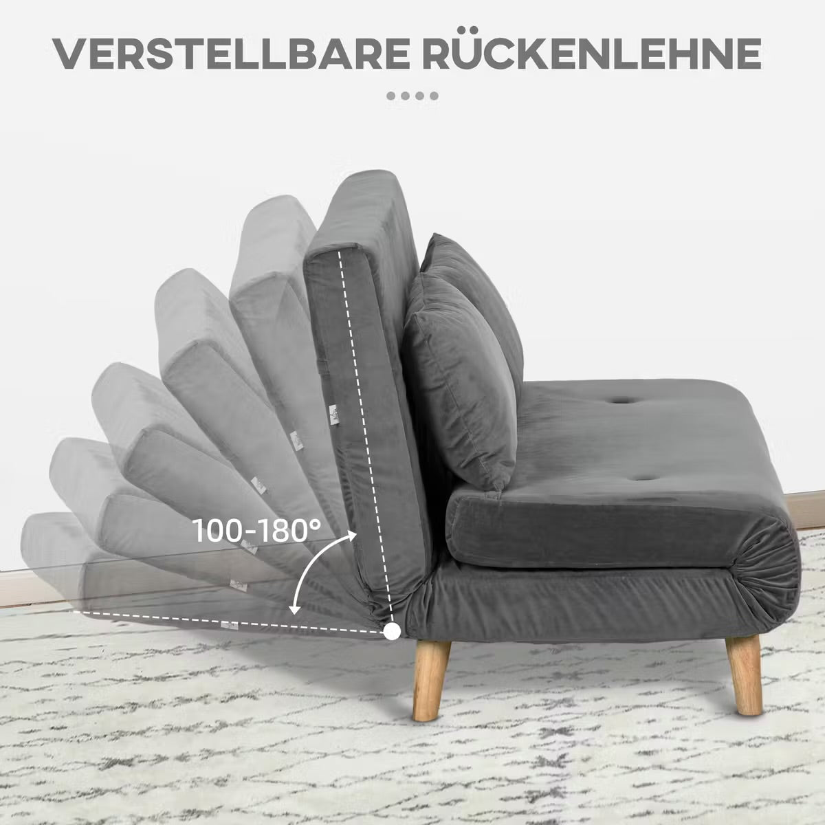 - ИЗДРЪЖЛИВА КОНСТРУКЦИЯ Изработен от стоманена рамка, крака тип „каучуково дърво“ и неплъзгащи се подложки за крака, този сгъваем диван с функция за сън осигурява оптимална опора при седене и релакс.
