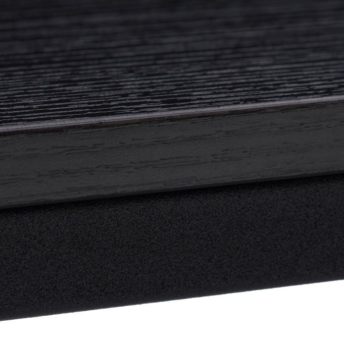 - U-образна форма: здрава странична маса за хол с MDF плот, изцяло в черно